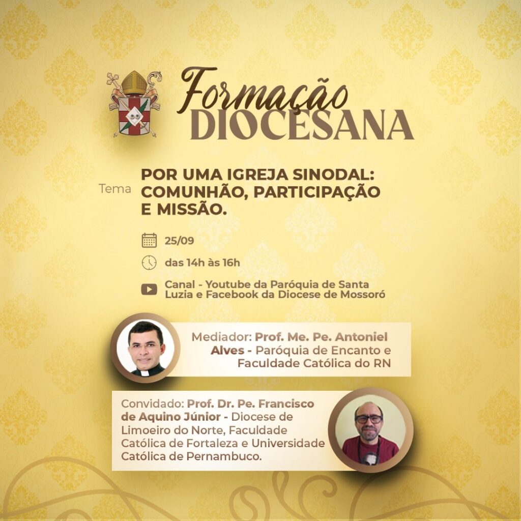 O bispo Dom Mariano Manzana convida todo povo de Deus para uma formação virtual. Nesta formação será abordada a temática do processo sinodal, processo esse que nossa Igreja entrará a partir do dia 09 de outubro com a presidência do Papa Francisco. Dia – 25 – 14h às 16hCanal- Youtube da @paroquiasantaluziamossoro,Facebook da Diocese e […]