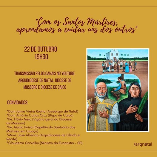 “Com os Santos Mártires, aprendamos a cuidar uns dos outros” é o tema de uma live que será realizada nesta sexta-feira, 22, às 19h30, através dos canais da Arquidiocese de Natal e das Dioceses de Mossoró e de Caicó, no Youtube. A live terá como convidados o arcebispo de Natal, Dom Jaime Vieira Rocha; o […]