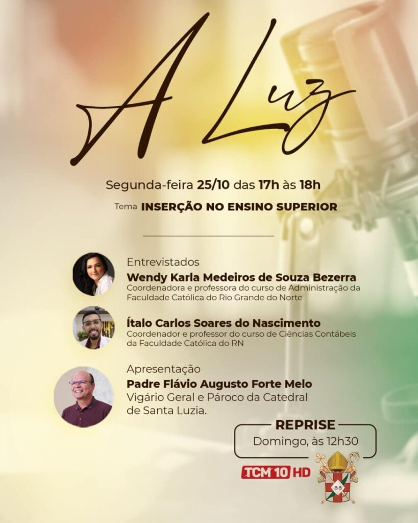 A preocupação com uma melhor qualificação, o cenário de desemprego e a necessidade de uma formação profissional que propicie inserção qualificada no mercado de trabalho serão alguns dos temas discutidos hoje a partir das 17h no programa A Luz da Diocese pela TCM-HD. Acompanhe!