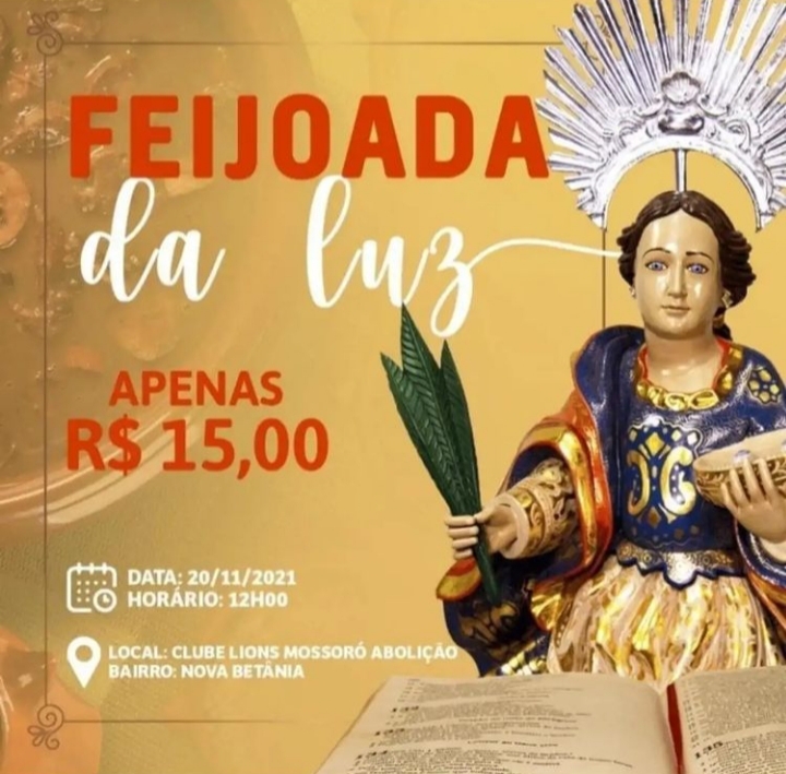 A Paróquia de Santa Luzia realiza no próximo dia 20 a Feijoada da Luz. A cantora Aline Reis já está confirmada, para alegrar e abrilhantar o evento. Um momento para reunir a família, os amigos e, juntos, celebrarmos a vida! A Feijoada da Luz será no Lions Clube Abolição, que fica no bairro de Nova […]
