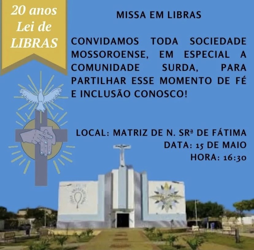 Missa em Libras acontece hoje (15) na Matriz de Nossa senhora de Fátima