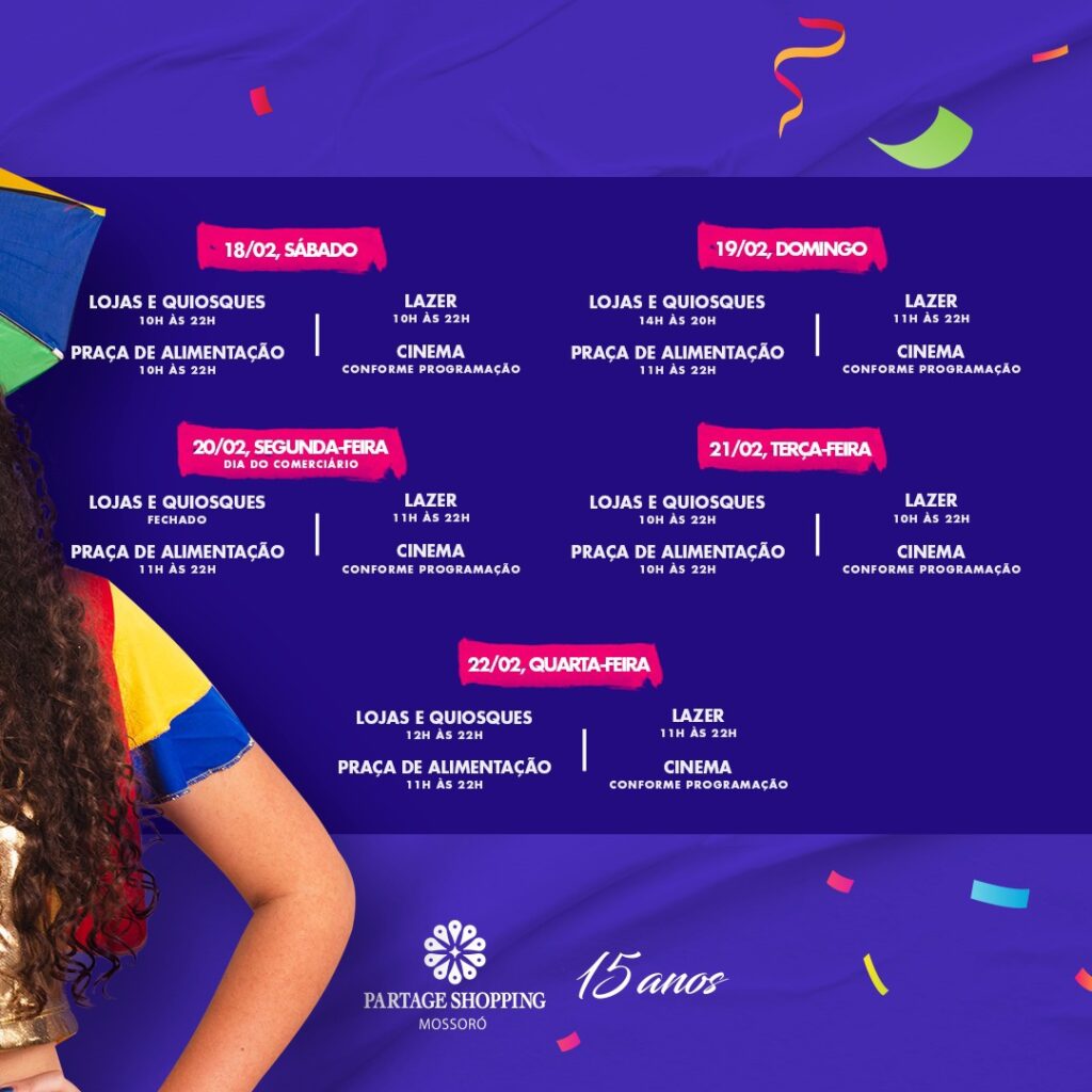 Horários de Funcionamento do Partage Mossoró durante o Carnaval