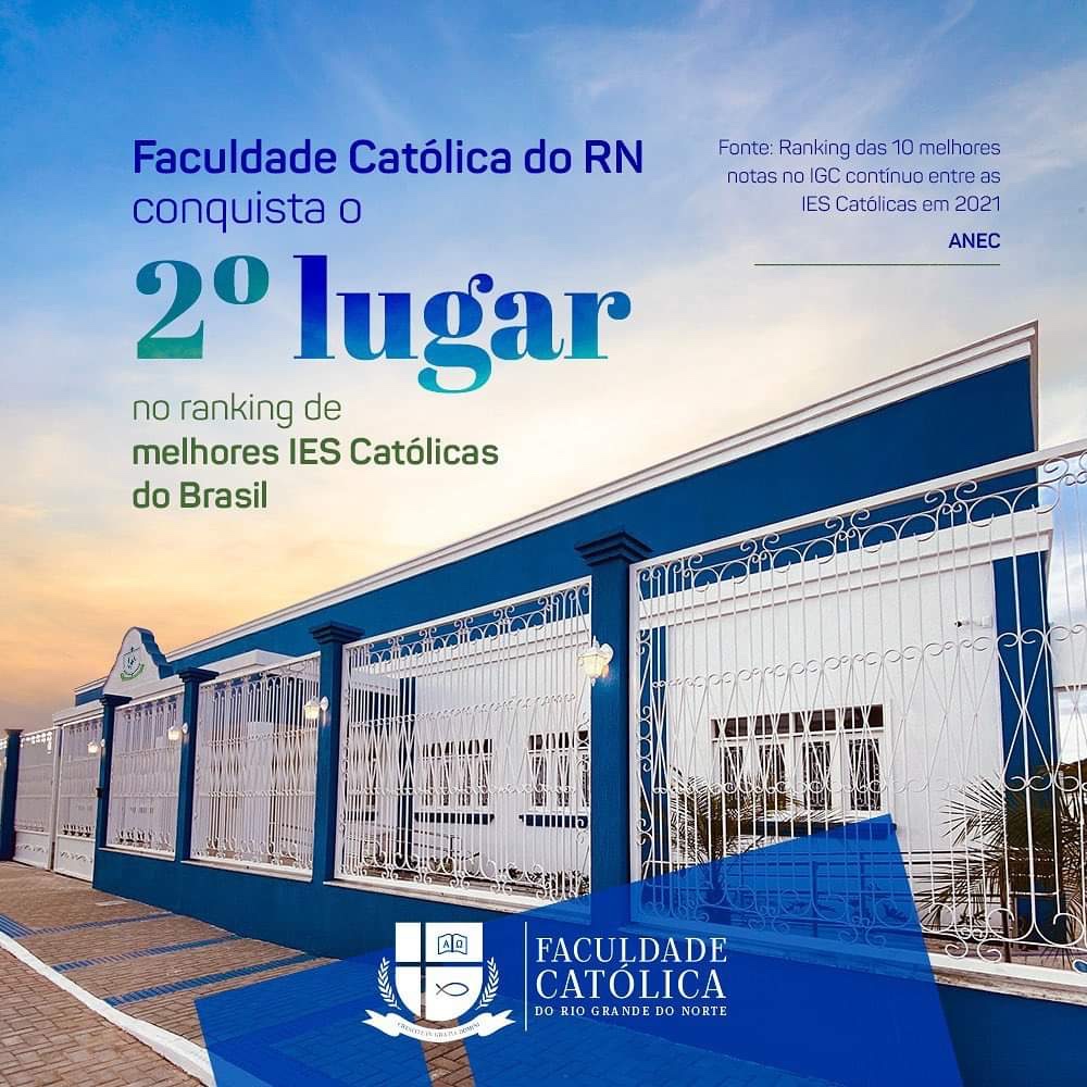 Faculdade Católica do RN conquista o 2º lugar no ranking de melhores IES Católicas do Brasil.