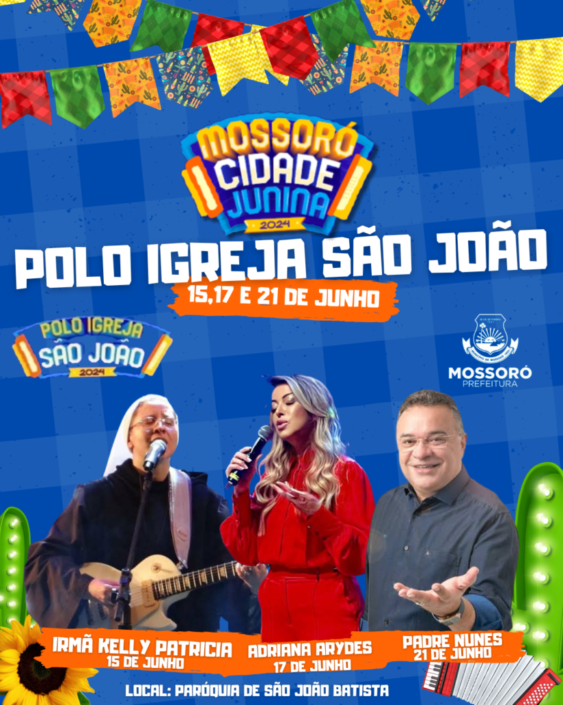 Dentro da tradicional festa de São João Batista, em Mossoró-RN, que acontecerá de 14 a 24 de junho, teremos três grandes shows: Dia 15: Ir Kelly Patrícia ( após a novena)Dia 17: Adriana Arydes ( Canção Nova)Dia 21: Padre Nunes ( Arquidiocese de Natal) Todos convidados Uma parceria da Paróquia de São João Batista com […]