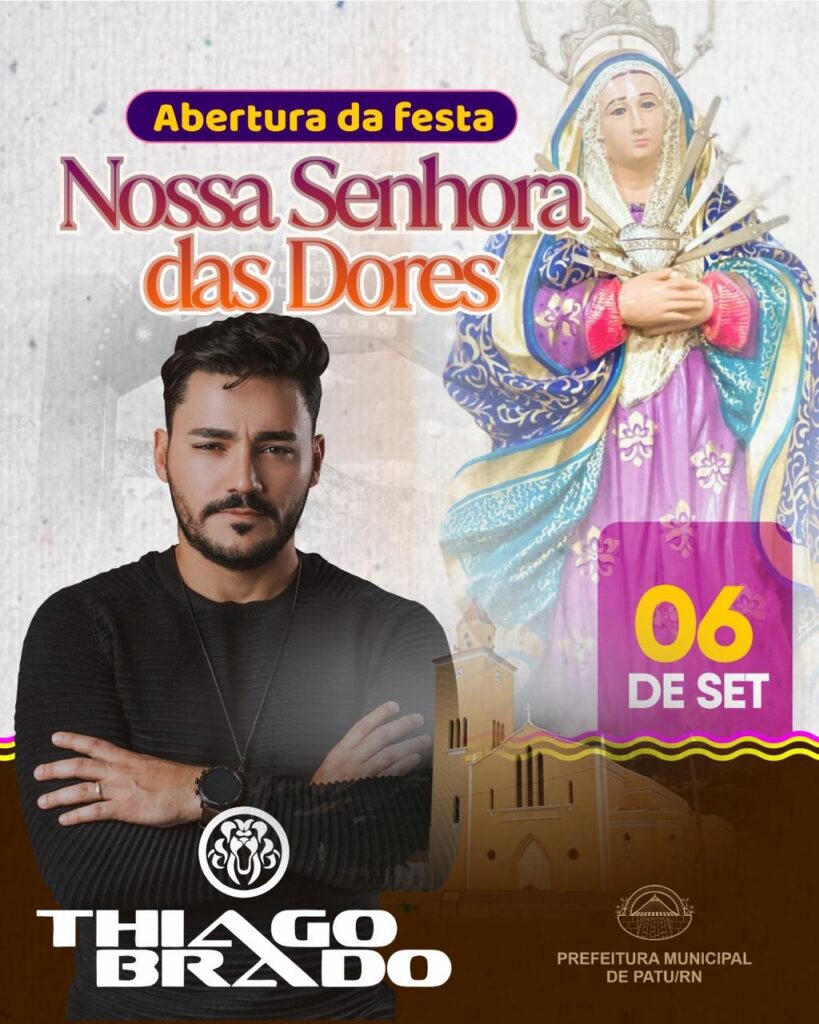 A cidade de Patu vivencia um dos momentos mais aguardados do ano com a abertura oficial da Festa de Nossa Senhora das Dores, padroeira do município. A abertura será neste sábado (6) com uma missa e, logo após a celebração religiosa, a noite será abrilhantada por um grande show com o cantor Thiago Brado, referência […]