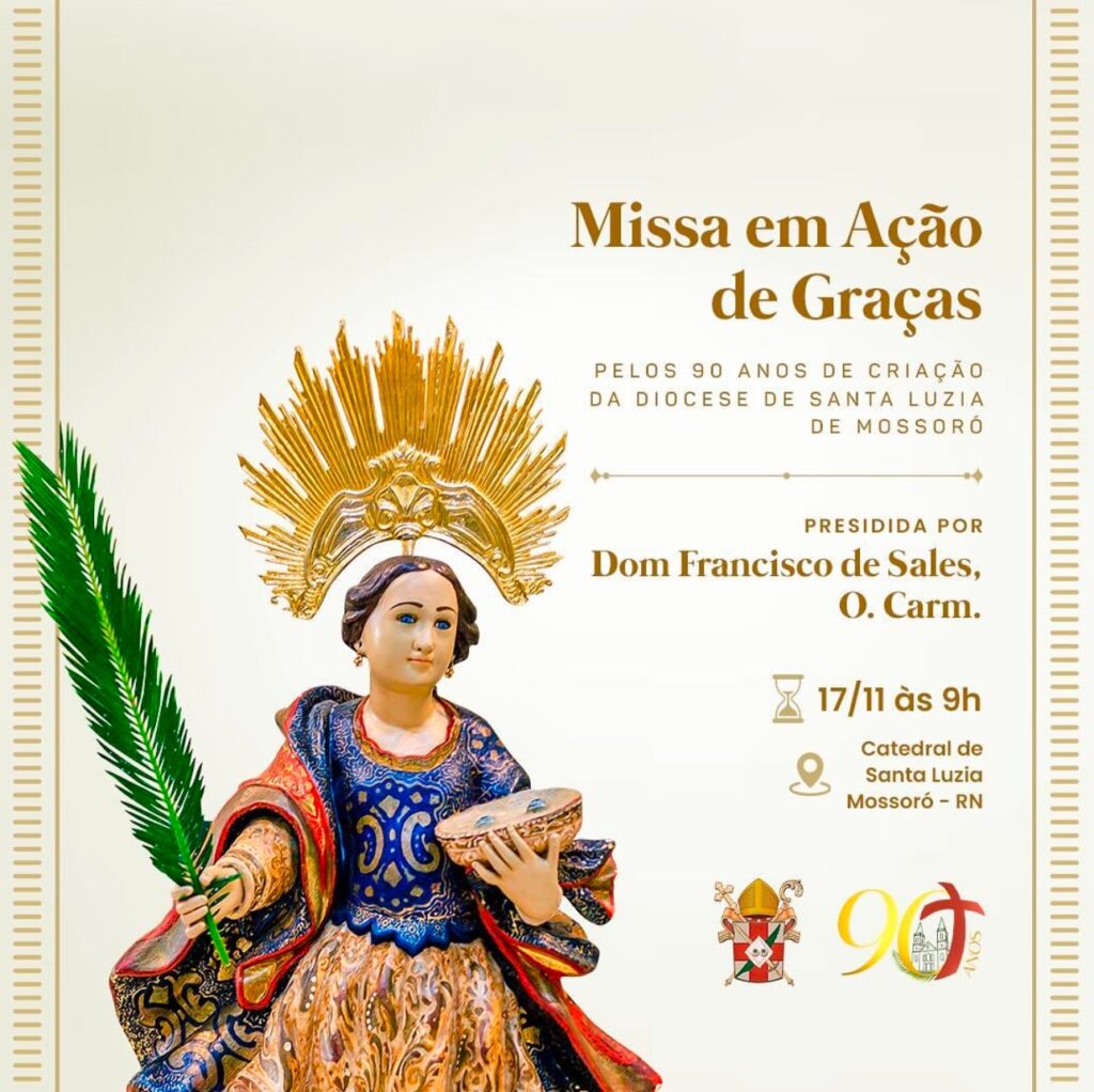A Diocese de Santa Luzia de Mossoró completará 90 anos na próxima segunda-feira, dia 18 de novembro de 2024. Para comemorar a data, a Diocese está realizando uma missa no domingo, dia 17, às 9h, na Catedral de Santa Luzia, que será presidida pelo bispo Diocesano, Dom Francisco de Sales, O.Carm, e concelebrada por vários […]