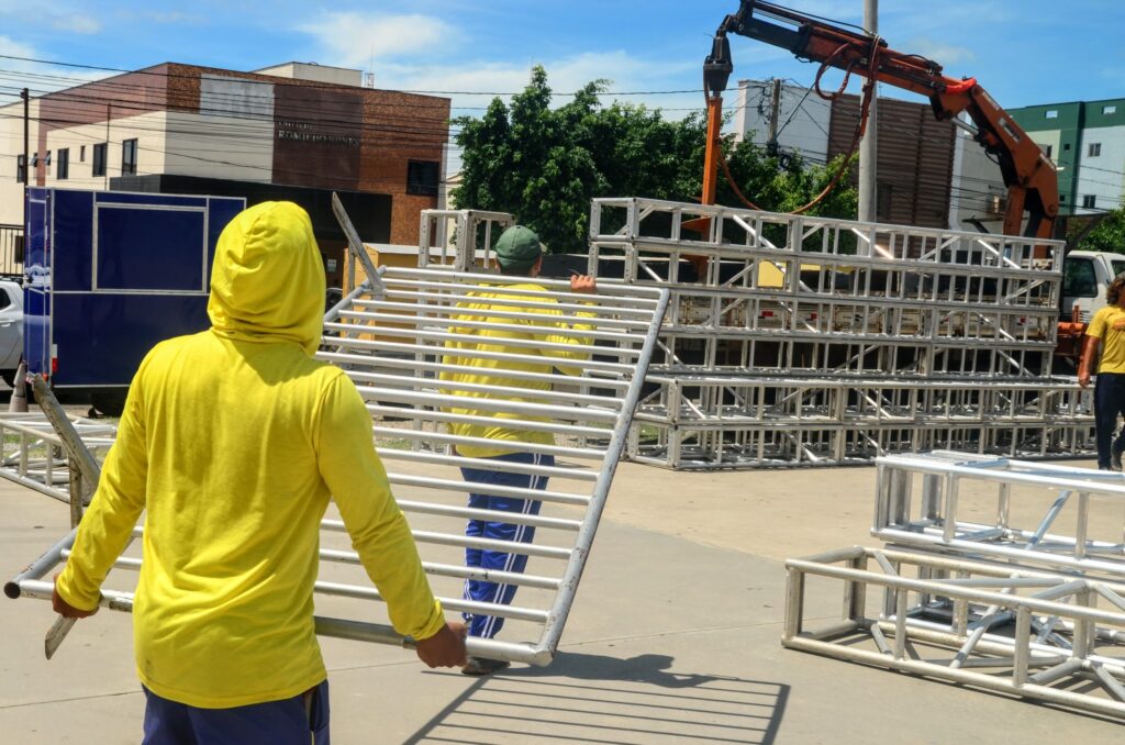Estrutura da Arena Deodete Dias começa a ser montada para o Festival de Quadrilhas do MCJ 2025