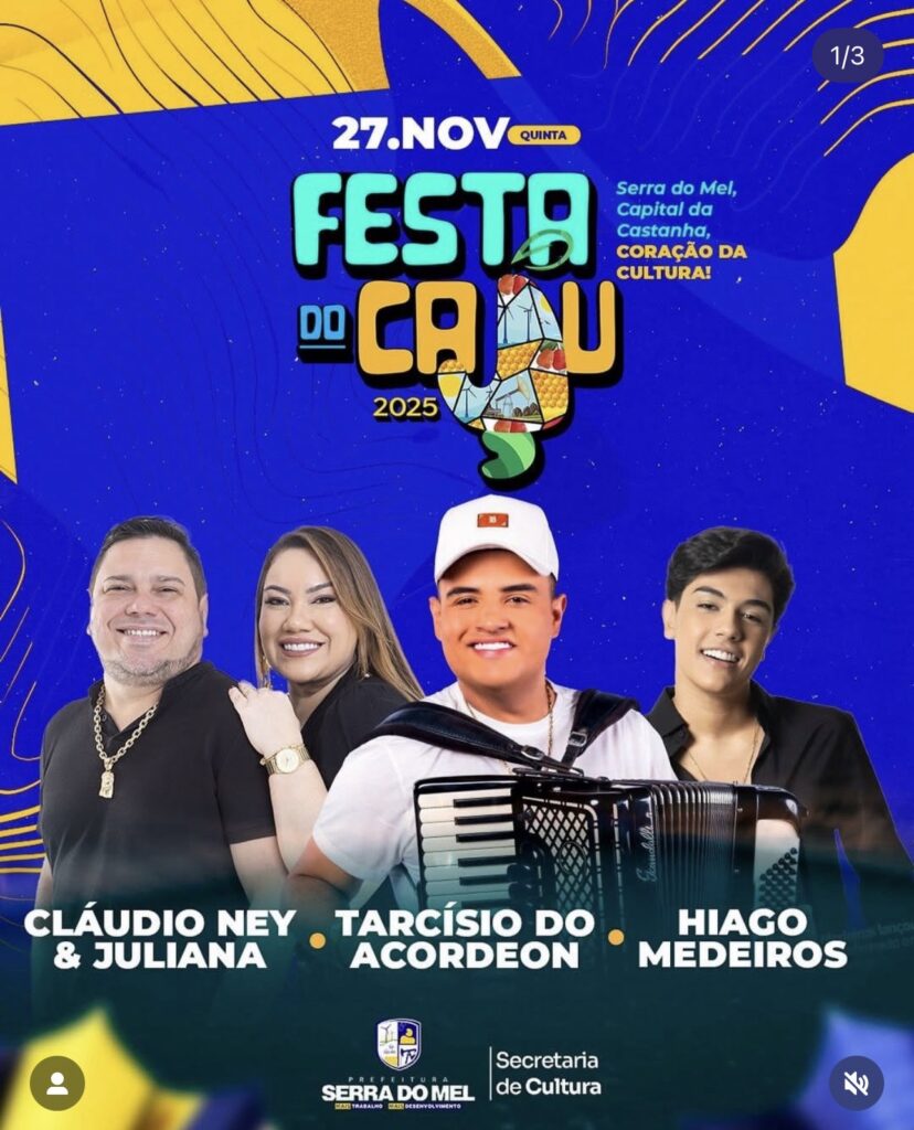 A partir desta quinta-feira, 27, tem início mais uma edição da tradicional Festa do Caju em Serra do Mel — um dos eventos culturais mais aguardados do município. A programação segue até o sábado, 29, reunindo música, cultura, diversidade e o orgulho das 23 vilas que fazem parte da história da cidade. Desde as primeiras horas do […]