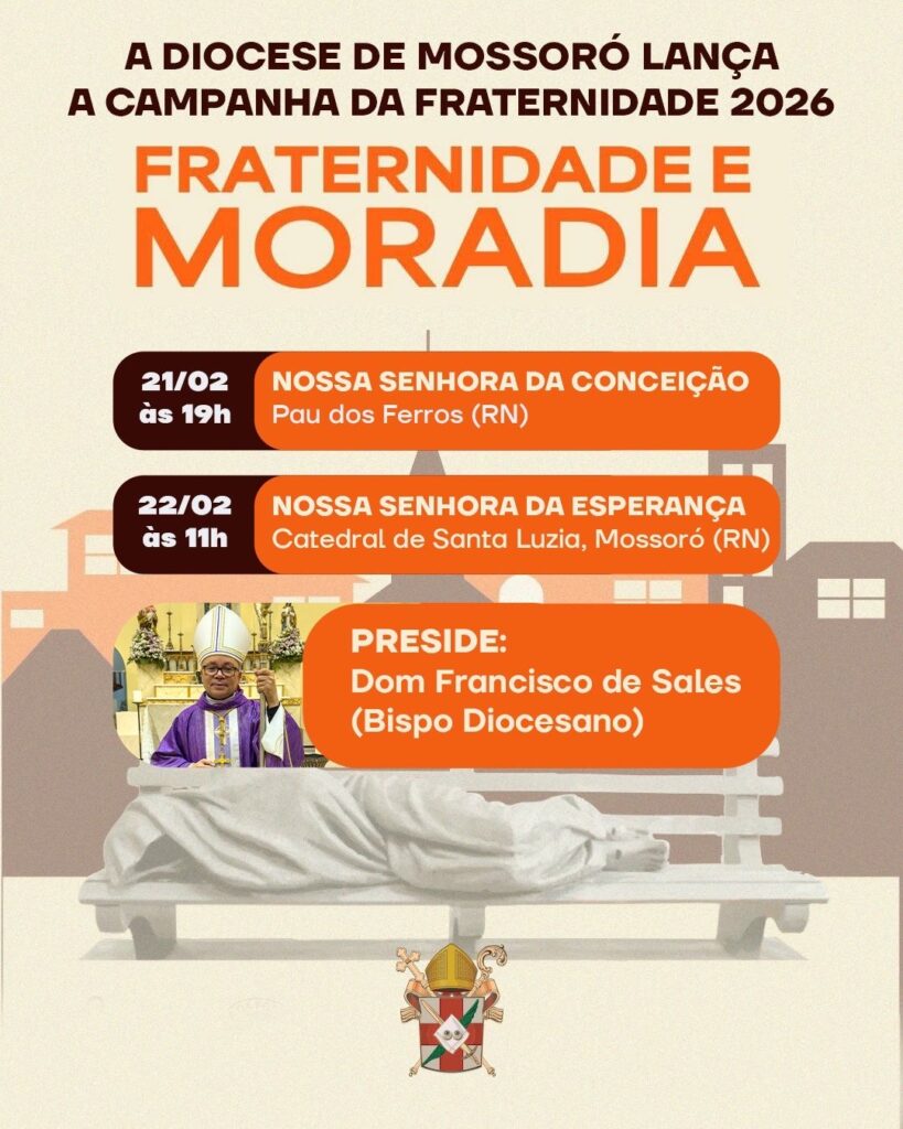 A Diocese de Mossoró lançou oficialmente a Campanha da Fraternidade 2026, que neste ano traz como tema “Fraternidade e Moradia”, convidando os fiéis a refletirem sobre o direito à habitação digna e o compromisso cristão com os mais vulneráveis. A programação de lançamento acontece em dois momentos celebrativos. No dia 21 de fevereiro, às 19h, […]