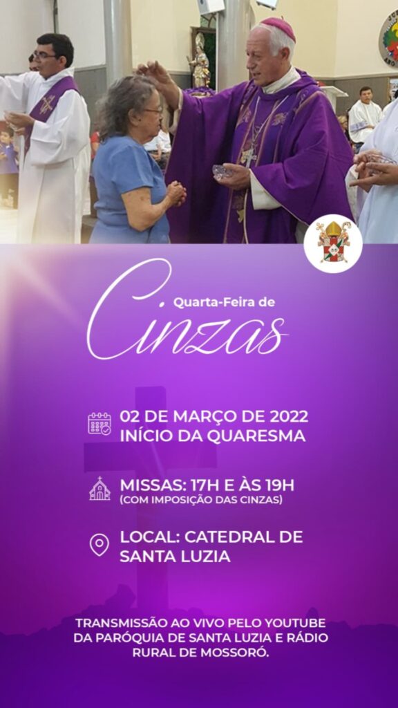 A Diocese de Mossoró celebra neste dia 02 de março a Quarta-feira de Cinzas, que marca o início do Tempo da Quaresma e o lançamento da Campanha da Fraternidade 2022 pela CNBB. Confira os horários das missas da Quarta-feira de Cinzas nas Igrejas Matrizes de Mossoró: Paróquia Santa Luzia – 17h e às 19h – Catedral de Santa […]