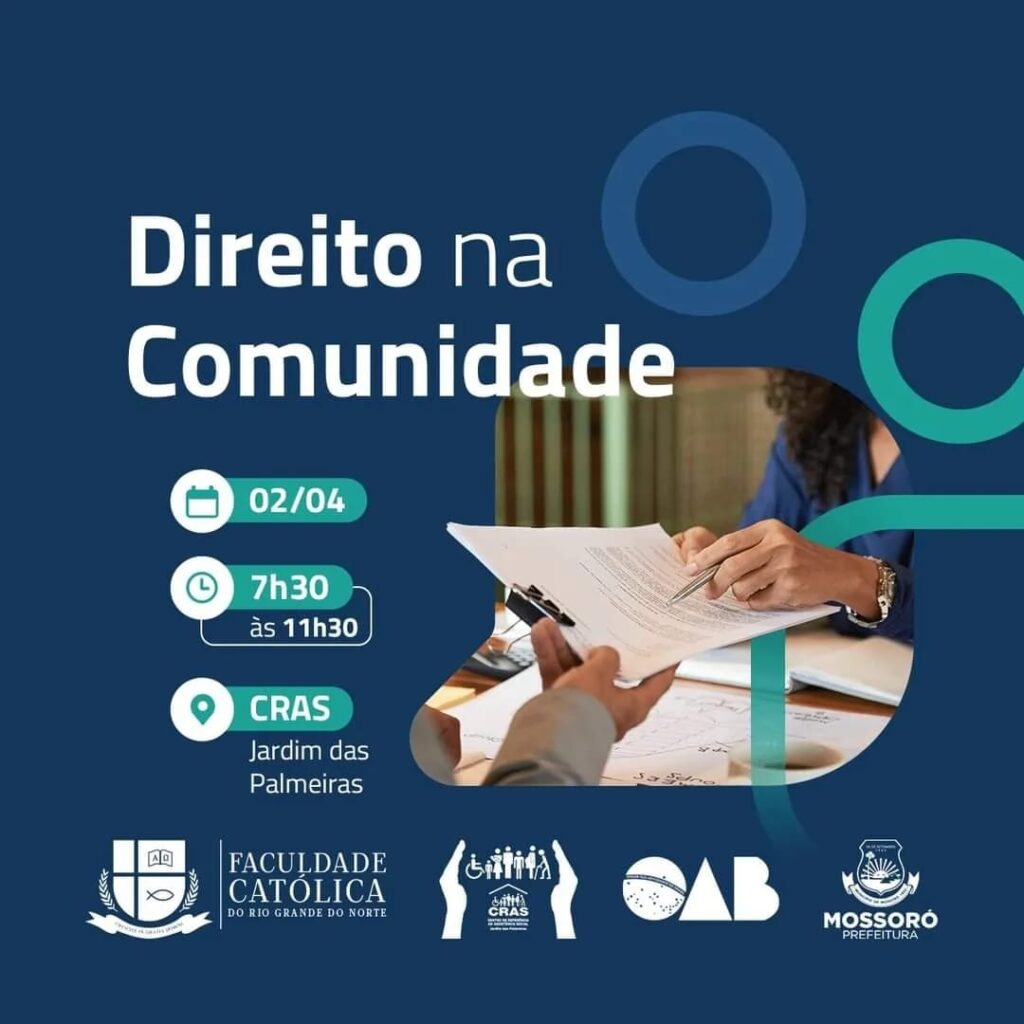 Na manhã deste sábado, dia 02 de abril, das 7h30 às 11h30, a Faculdade Católica do Rio Grande do Norte realiza a primeira edição do projeto Direito na Comunidade, no CRAS Jardim das Palmeiras, bairro Dom Jaime Câmara. O projeto é iniciativa do curso de Direito da Faculdade Católica, com o objetivo de proporcionar aos […]