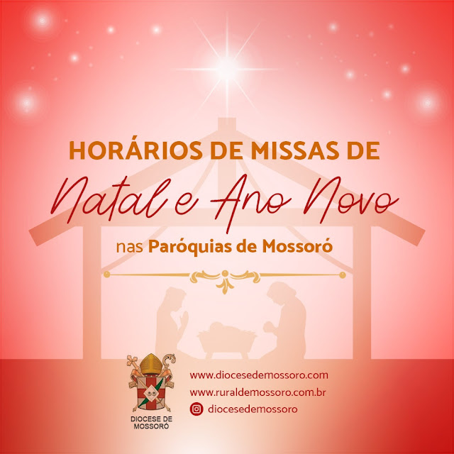 A Diocese de Mossoró divulgou os horários de Missas de Natal e Ano Novo nas paróquias da cidade. Confira: Dia de Natal- 25/12 Capela de Santa Teresinha- às 17h- Noite de Ano- 31/12 Catedral- às 19h Dia de Ano Novo- Mãe de Deus- 01/01/2022 Capela de Santa Teresinha- às 17h Contato- 84 3321.3157 ___________________________________________ Paróquia […]