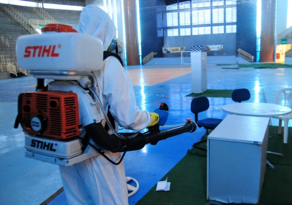 Ginásio Municipal passa por desinfecção para funcionar como Centro de Vacinação
