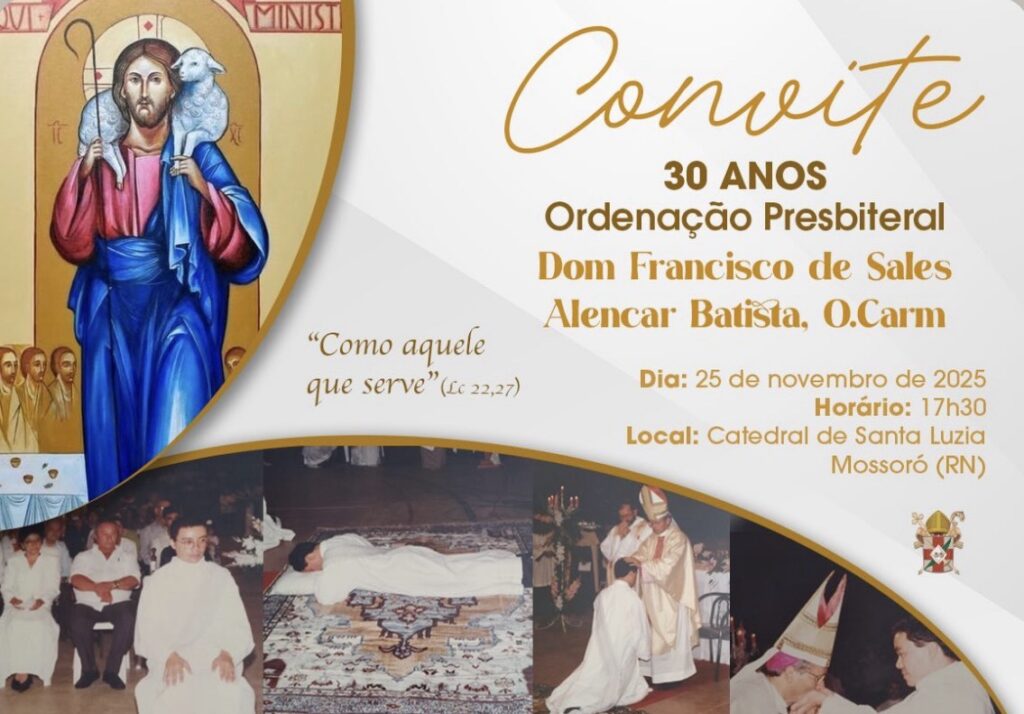 Nesta terça-feira, 25 de novembro, a Diocese de Mossoró celebra, com grande alegria, as três décadas de ordenação sacerdotal de Dom Francisco de Sales, nosso Bispo Diocesano. A comemoração nos faz retornar ao dia 25 de novembro de 1995, data marcada por um momento especial para toda a Igreja: a ordenação sacerdotal de Dom Francisco, […]
