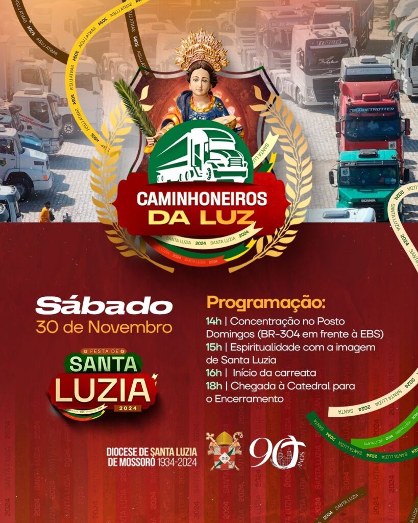 Este sábado (30), dia que antecede a abertura da festa de Santa Luzia, haverá uma intensa programação religiosa e social. A 7ª edição do Caminhoneiros da Luz começa às 15h, com saída do posto Domingos BR, em frente a EBS, e chegada à Catedral. Já a 3ª Corrida Kids também ocorre no sábado, com […]