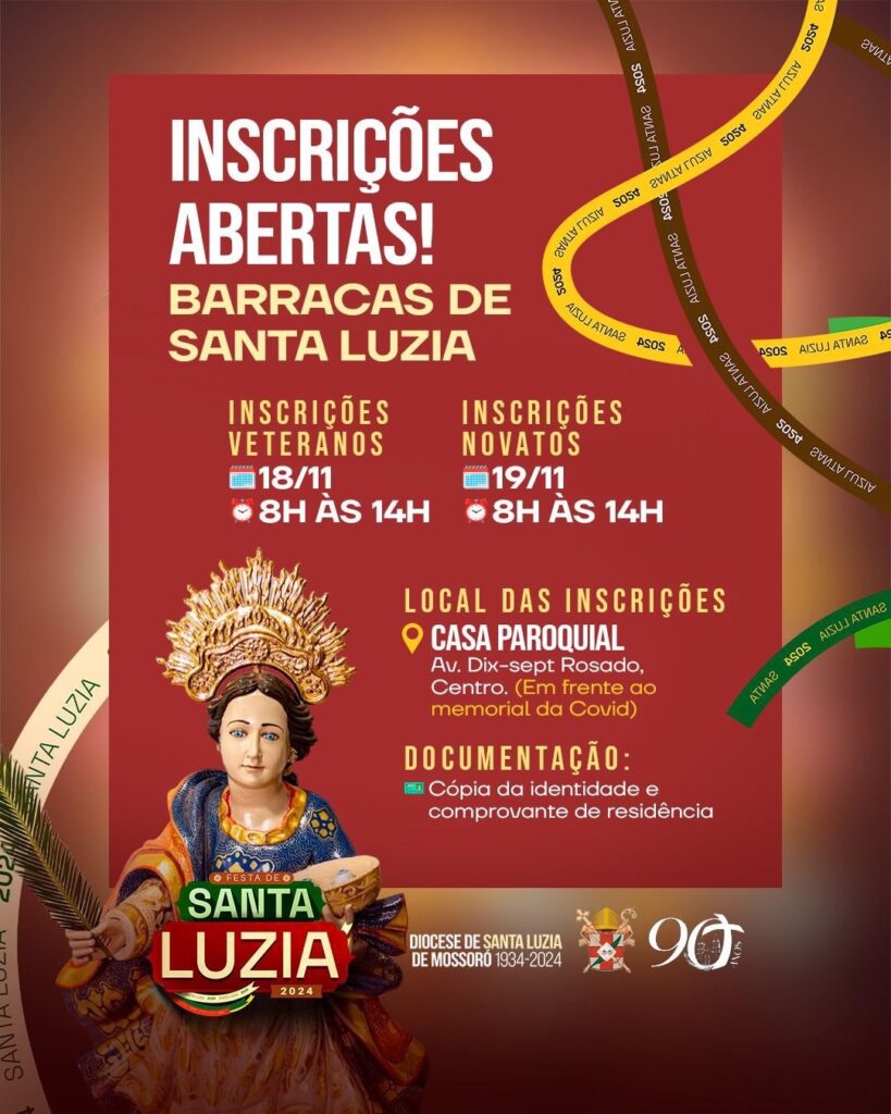 Estão abertas as inscrições abertas para as Barracas de Santa Luzia 2024 Data das Inscrições: Documentação Necessária: Venha participar!