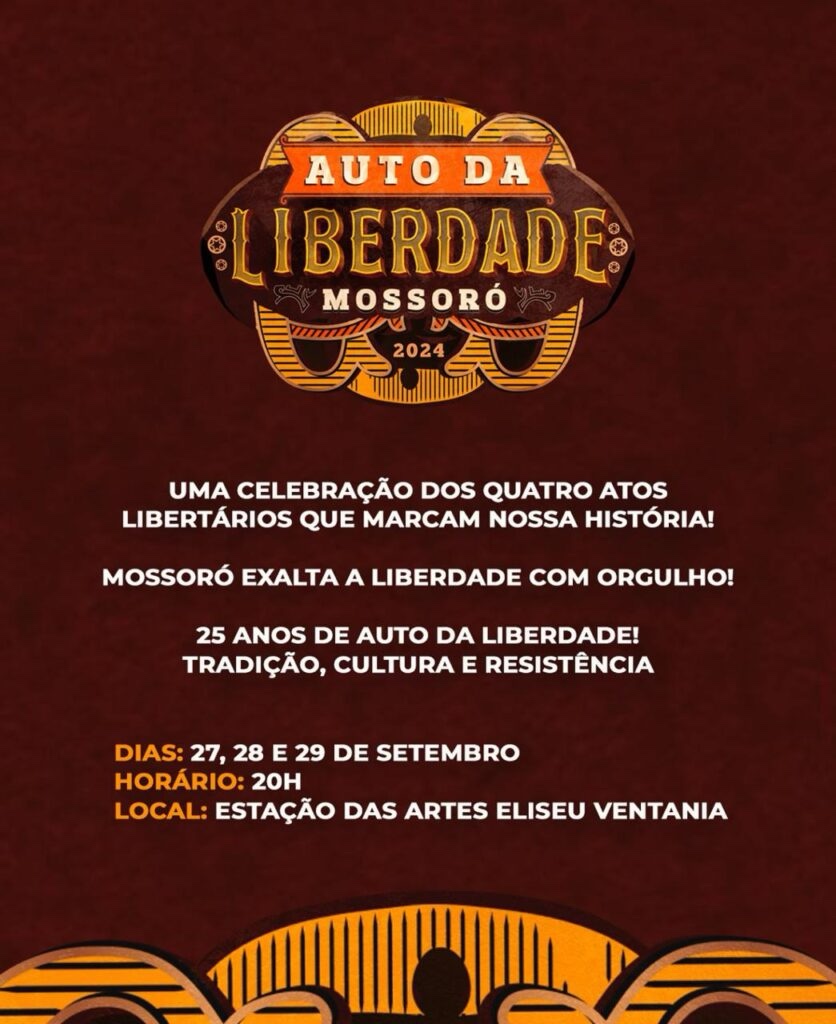 As apresentações do espetáculo “Auto da Liberdade 2024” terão início na próxima sexta-feira (27). O evento acontecerá nos dias 27, 28 e 29 deste mês, às 20h, na Estação das Artes Elizeu Ventania. O “Auto da Liberdade” resgata os quatro atos libertários de Mossoró: Motim das Mulheres, a Libertação dos Escravos, a Resistência ao Bando […]
