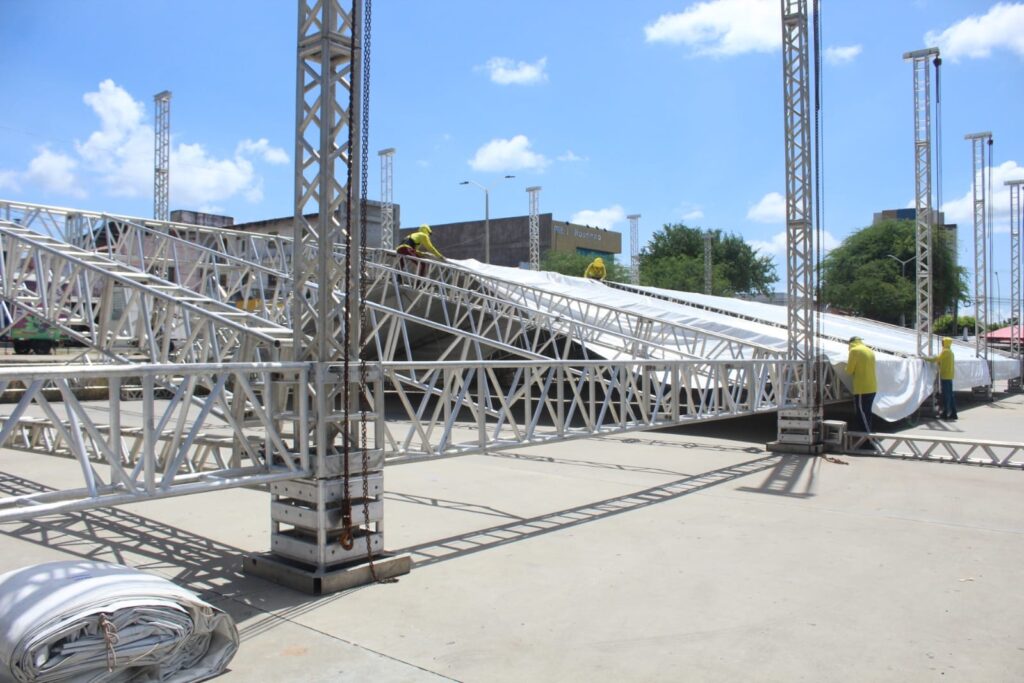 Prefeitura de Mossoró inicia montagem da Arena Deodete Dias para o Festival de Quadrilhas Juninas