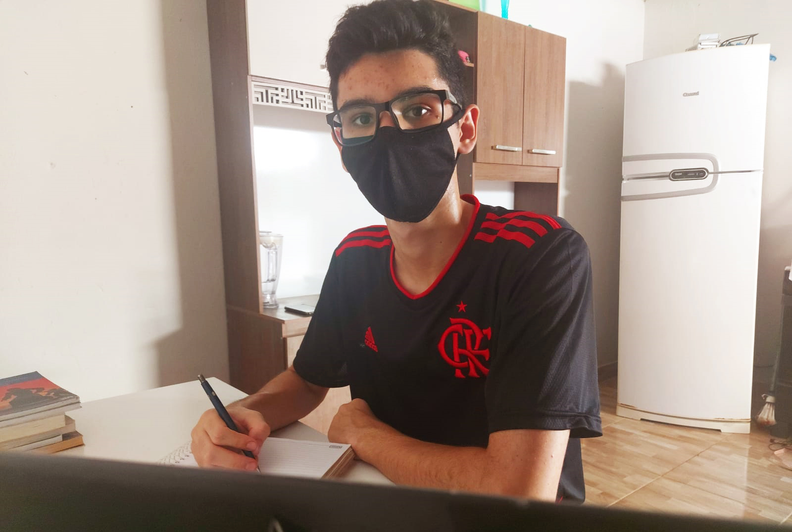 O aluno Rickson Aguiar Martins da Silva, 14 anos, obteve nota 100...