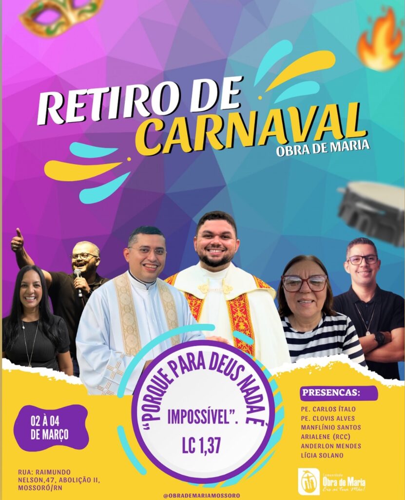 Confira a Programação do Retiro de Carnaval da Obra de Maria