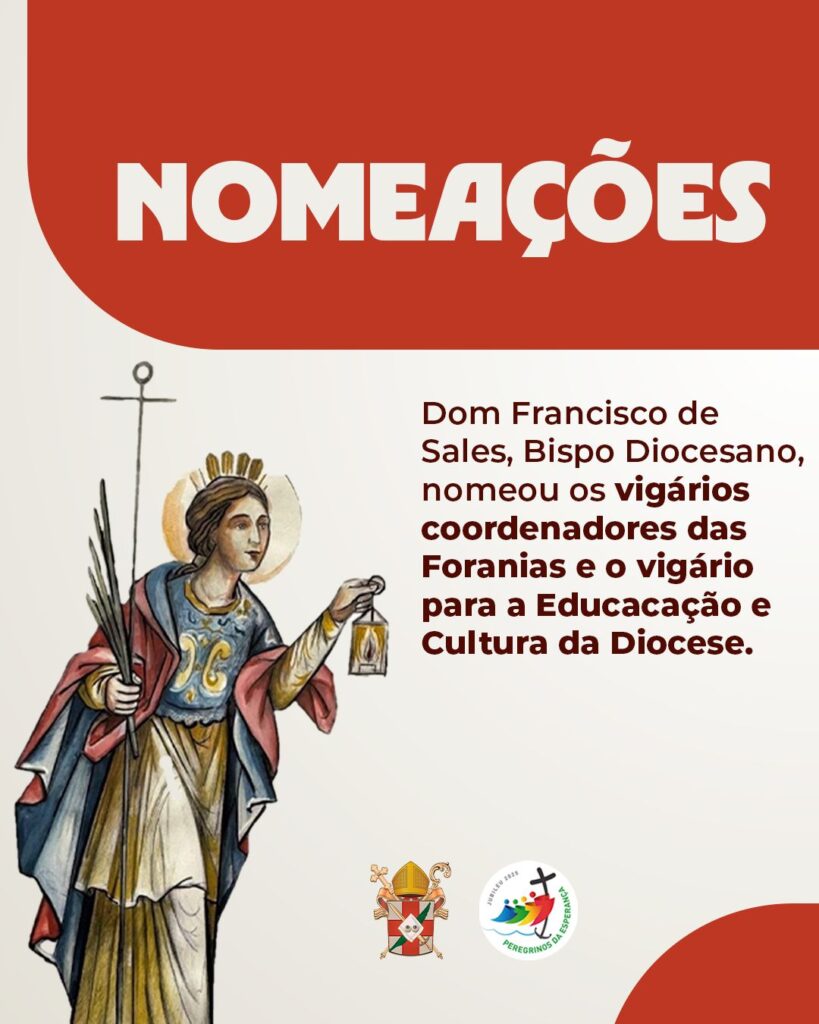 Dom Francisco de Sales, O.Carm.,Bispo Diocesano, anunciou nomeações de Vigários Forâneos e o Vigário Episcopal para a Educação e Cultura.