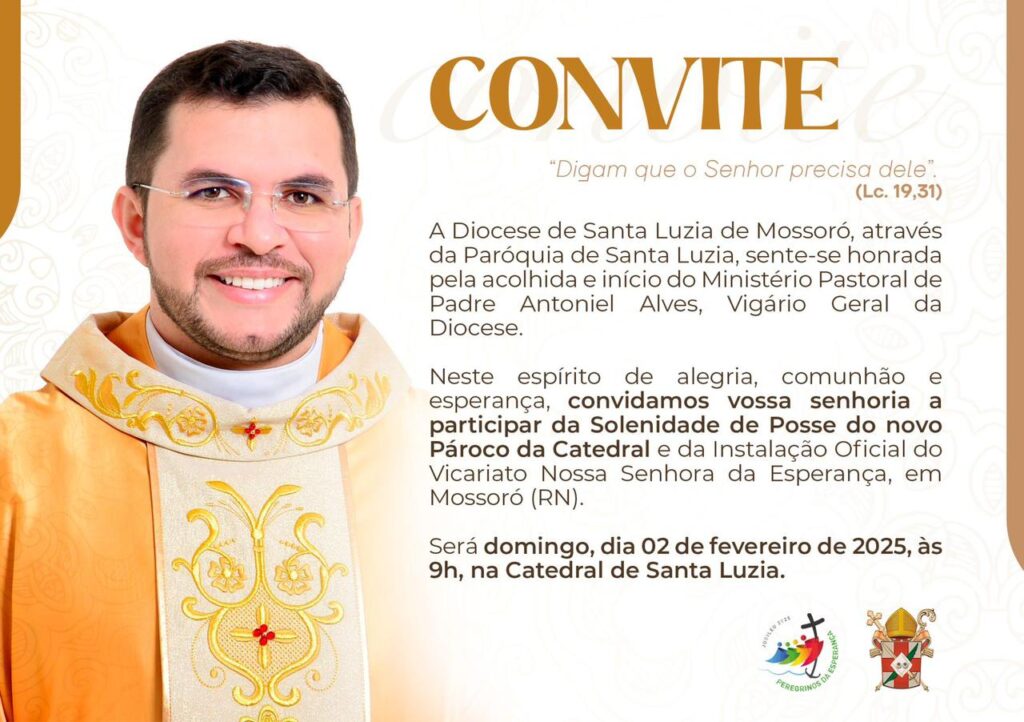 A Paróquia de Santa Luzia, em Mossoró (RN), tem a alegria de convidar a todos para a Missa de Posse do nosso novo pároco, Pe Antoniel Alves da Silva. Este momento de bênçãos e acolhimento acontecerá no dia 02 de fevereiro de 2025 (domingo), com a seguinte programação: 8h55- Acolhida na Catedral 9h – Santa […]