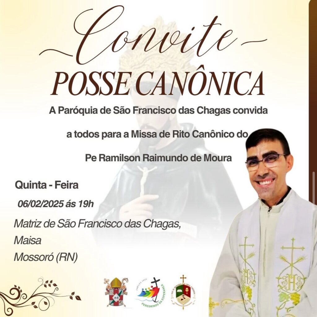 A Paróquia de São Francisco das Chagas, na Maisa, tem a alegria de convidar a todos para a Missa de Posse do nosso novo pároco, Pe Ramilson Raimundo de Moura Este momento de bênçãos e acolhimento acontecerá no dia 6 de fevereiro de 2025 (quinta-feira), com a seguinte programação: 19h – Matriz de São Francisco […]