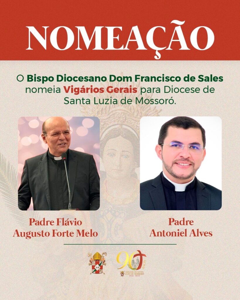 O Bispo Diocesano Dom Francisco de Sales nomeou nesta segunda-feira, dia 21 de outubro de 2024, dois Vigários Gerais para a Diocese de Santa Luzia de Mossoró. A função será exercida, a partir de agora, pelo Padre Flávio Augusto Forte Melo e pelo Pe. Antoniel Alves. O Vigário Geral é aquele que colabora com o […]