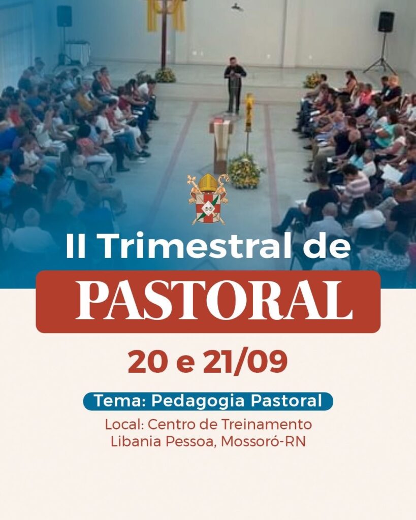 A Diocese realiza, sexta e sábado, a sua Il Trimestral sobre Pedagogia Pastoral com a participação do Bispo Diocesano Dom Francisco de Sales, clero, diáconos, seminaristas e agentes de pastorais. A Trimestral será no auditório do Centro de Treinamento Libania Lopes Pessoa, em Mossoró-RN
