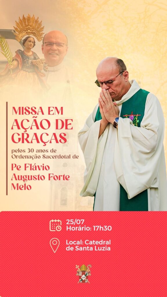 É com muita alegria que convidamos você para participar da missa em ação de graças em celebração ao aniversário sacerdotal do nosso querido Pe Flávio Augusto Forte Melo, pároco da Catedral de Santa Luzia. Neste momento especial, queremos agradecer a Deus pela vida e vocação de Pe Flávio e por todo o seu amor e […]