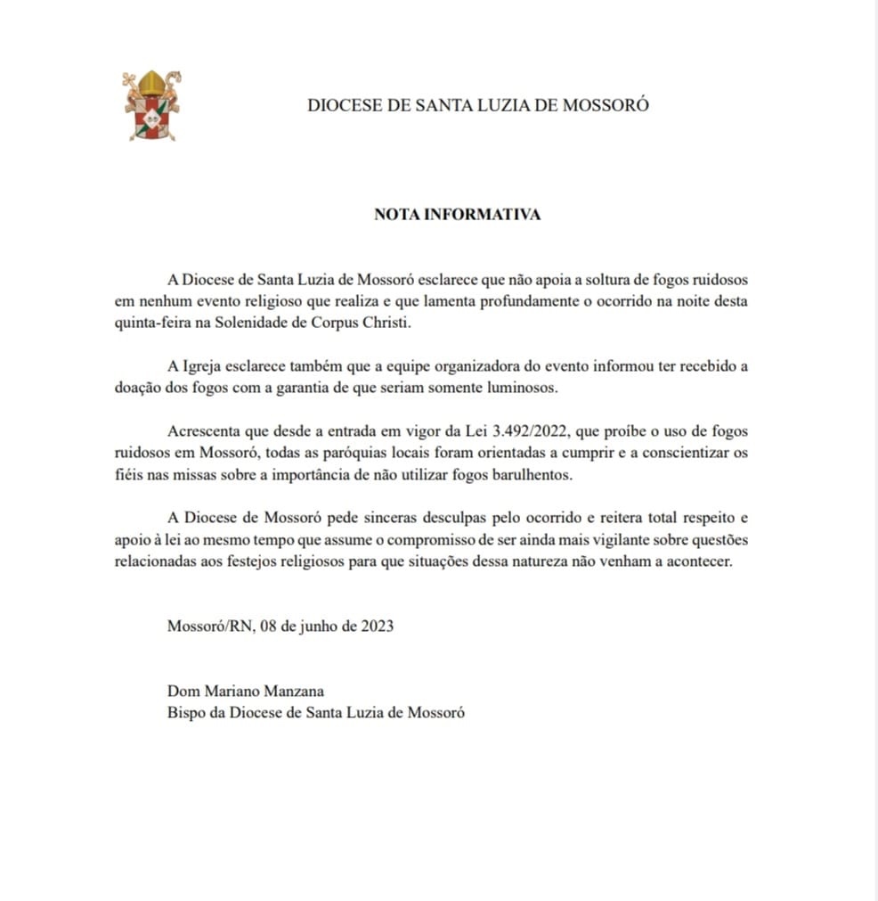 Diocese de Mossoró emite nota informativa