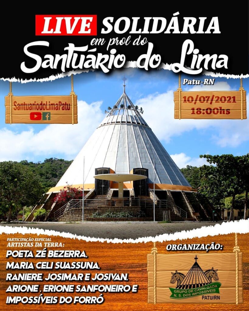 O grupo de cavalgada Amigos do Santuário de Nossa Senhora dos Impossíveis, em Patu/RN, está organizando uma live no dia 10, às 18h, para arrecadar recursos pela internet em prol da manutenção do Santuário de Nossa Senhora dos Impossíveis. O Santuário tinha uma agenda de romarias anual (Romaria das Famílias, da Juventude, Terço dos Homens, Cavalgada entre outros) onde recebia centenas de romeiros (as), mas com a pandemia da covid-19 nenhum evento pode ser realizado, o que acarreta num momento difícil para o Santuário.