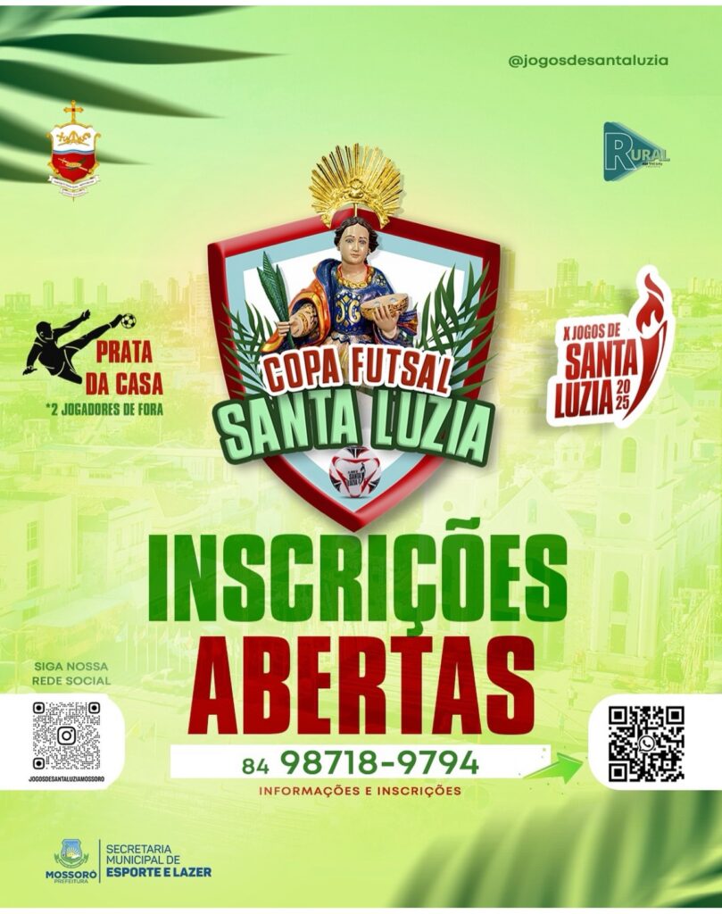 A maior e mais tradicional competição de futsal da região está de volta! Estão oficialmente abertas as inscrições para a Copa Futsal Santa Luzia 2025, evento que promete movimentar Mossoró com união, fé, emoção e muito talento dentro de quadra.
