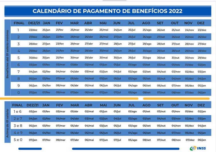 Conforme a tabela de pagamentos anteriormente divulgada pelo instituto, os benefícios de um salário mínimo serão pagos nas próximas duas semanas, até 5 de agosto, conforme o número do cartão do beneficiário. Já os benefícios de quem recebe acima do piso nacional serão liberados entre os dias 1 e 5 de agosto, segundo a ordem prevista na tabela.