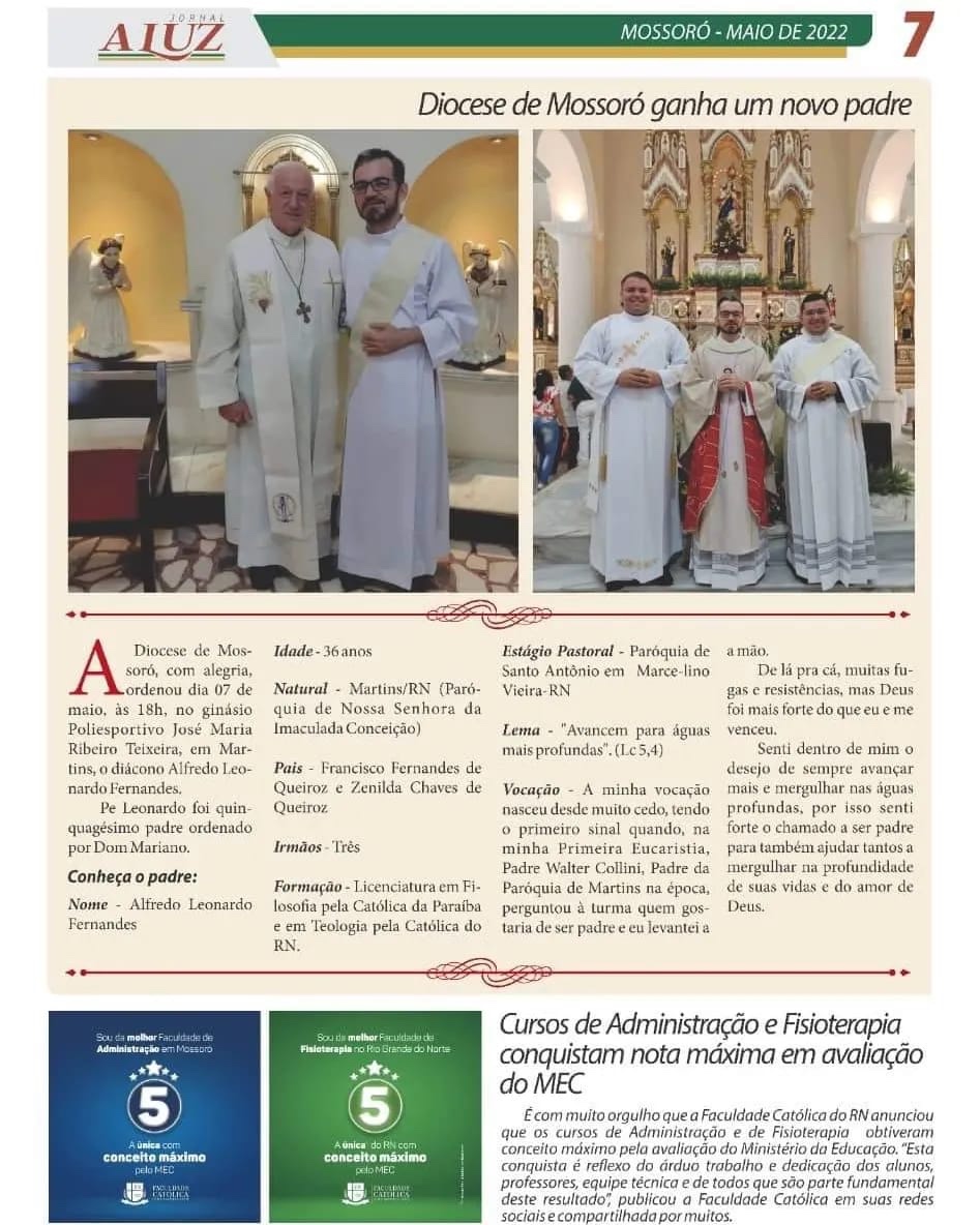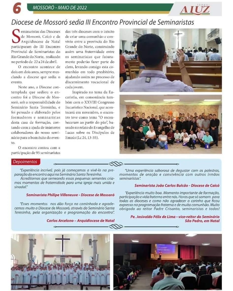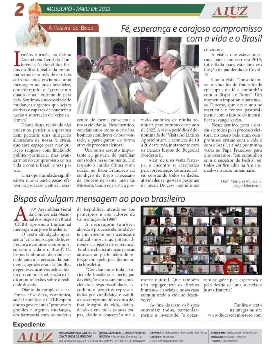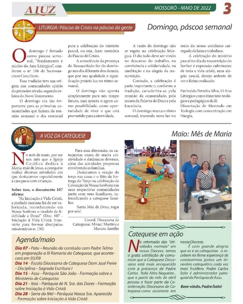 Já está disponível a edição de maio do Jornal A Luz da Diocese.