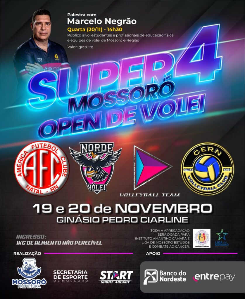 O município de Mossoró entrou de vez na rota dos grandiosos eventos esportivos. Após a final do campeonato Brasileiro de Futsal, o Ginásio Municipal Pedro Ciarlini receberá nos dias 19 e 20 de novembro o Super 4 Mossoró Open de Volei, quadrangular com atletas profissionais. Um dos times é o do medalhista olímpico de 1992, Marcelo Negrão.