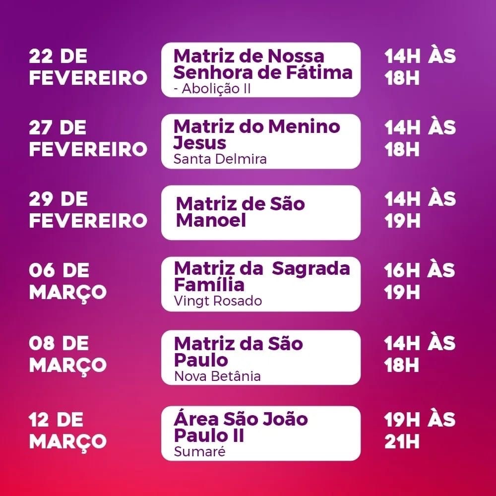 12/03- Área São João Paulo II- Sumaré ( 19h às 21h)