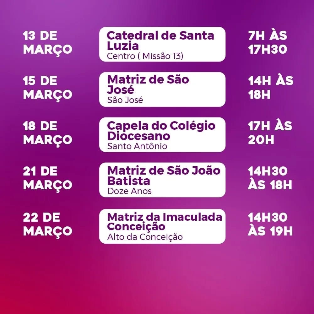 18/03- Capela do Colégio Diocesano- Santo Antônio ( 17h às 20h)