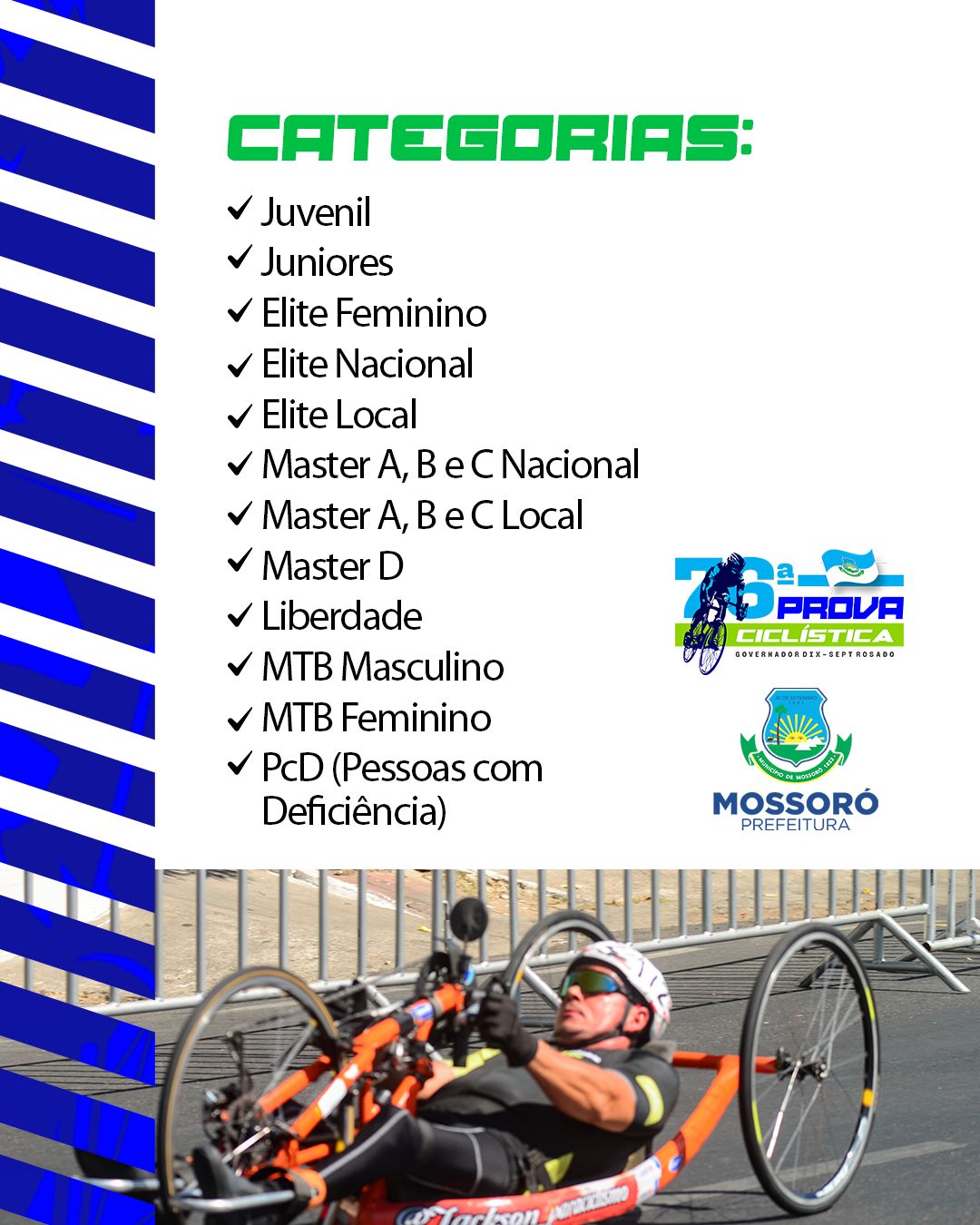 As inscrições podem ser feitas exclusivamente pelo site oficial: provaciclistica.mossoro.rn.gov.br. O valor é de R$ 50,00 por atleta.