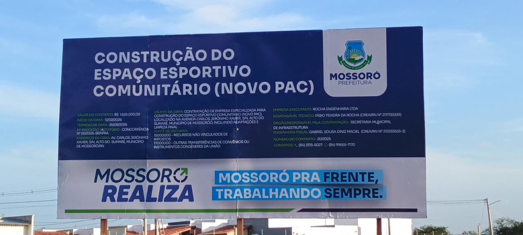 Nesta terça-feira (24), a Prefeitura de Mossoró formalizou a assinatura da ordem de serviço para a construção do Complexo Esportivo Comunitário do Sumaré, no bairro Alto do Sumaré, ampliando a infraestrutura esportiva e de lazer da cidade.