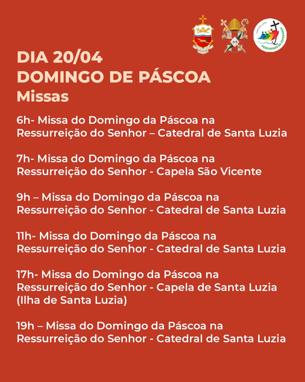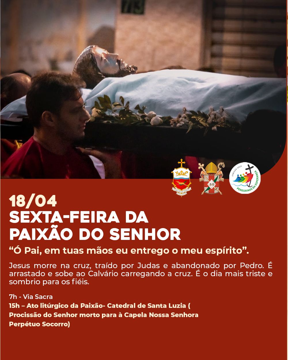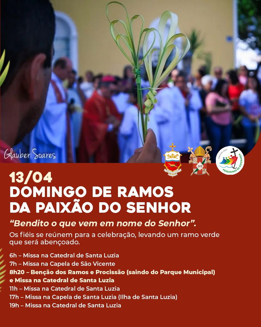 A Diocese divulga hoje a programação da Semana Santa 2025, com as celebrações que serão presididas pelo Bispo Diocesano, Dom Francisco de Sales, na Catedral de Santa Luzia.