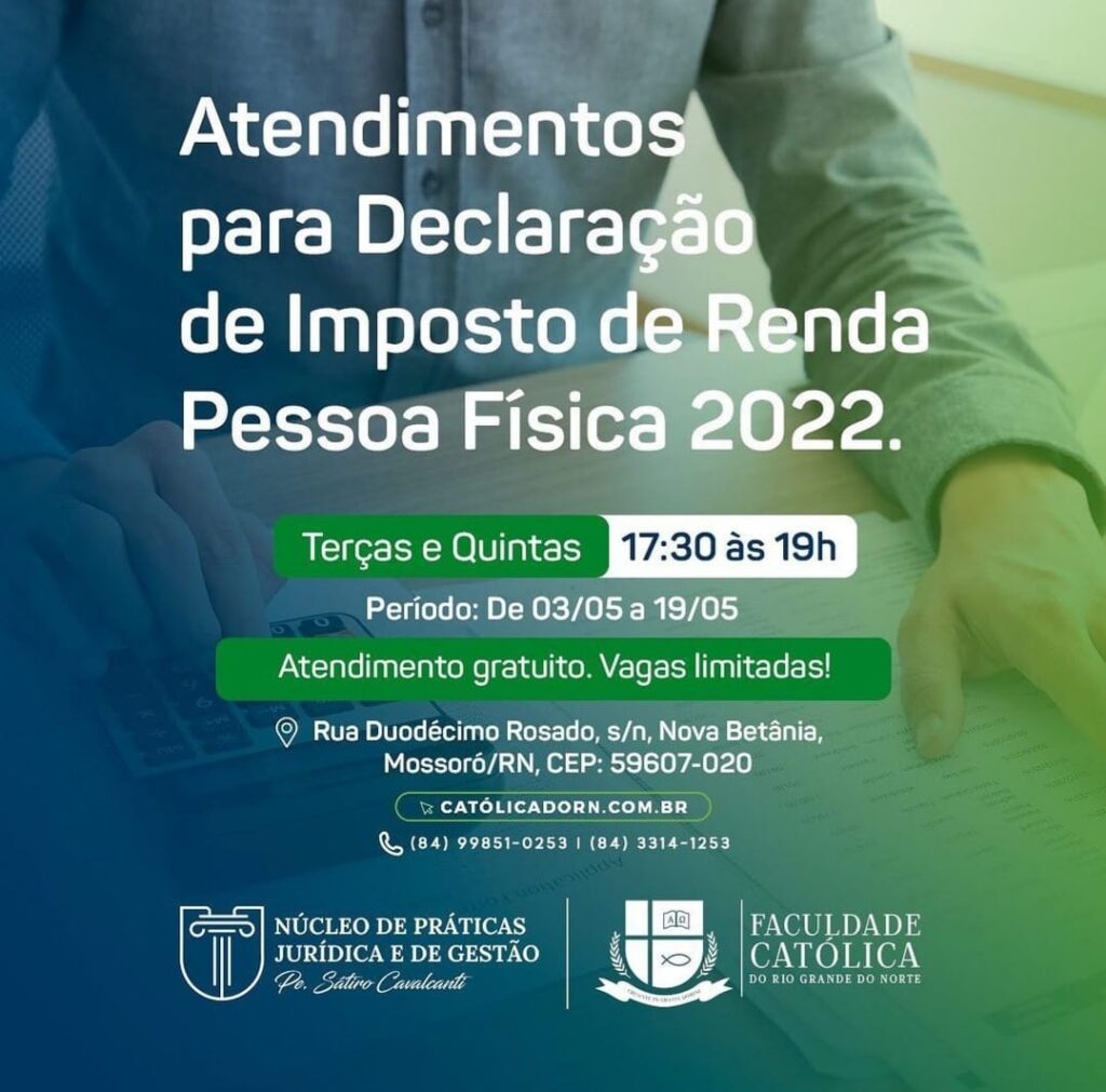 Ainda não fez sua declaração de imposto de renda? Está com dúvida e não sabe por onde começar? O Núcleo de Práticas de Gestão da Faculdade Católica do RN pode te ajudar! Estão abertos os agendamentos para Declaração de Imposto de Renda Pessoa Física 2022. Os atendimentos serão realizados no Centro de Práticas Múltiplas Dom […]
