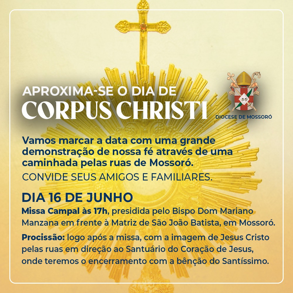 A Paróquia de Santa Luzia convida para edição 2022 da Festa do Sagrado Coração de Jesus. Participe! Local: Santuário do Sagrado Coração de Jesus- Centro de Mossoró/RN. Transmissão: Rádio Rural de Mossoró