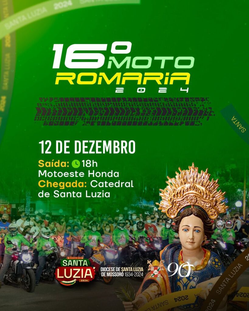 Nesta quinta-feira acontece a XVI MOTO ROMARIA DA LUZ, tradicional evento da Festa de Santa Luzia, com saída as 18h da Motoeste Honda e Chegada na Catedral de Santa Luzia.